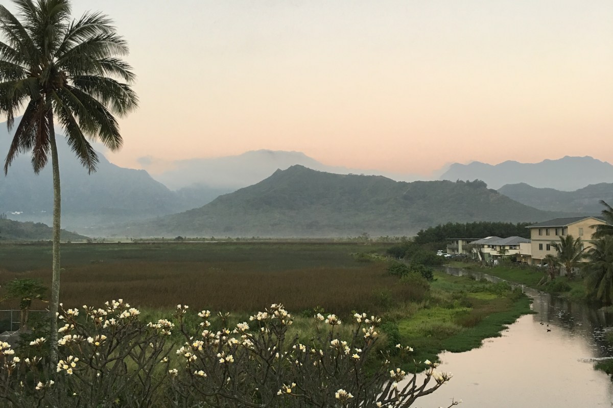 The photo is the view off of my lanai. It’s Kawainui Marsh and vog around the mountains.