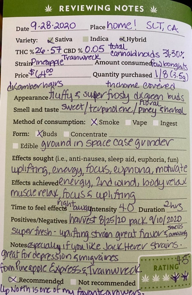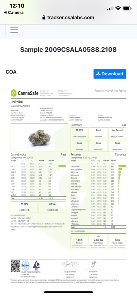 I learned to read profiles of flower and other cannabis products when I lived in Las Vegas. Not many growers or manufacturers add that information to their product boxes or jars in California. It’s a bummer, I find it really helpful. Talking about terpene profiles is a good topic for another post.