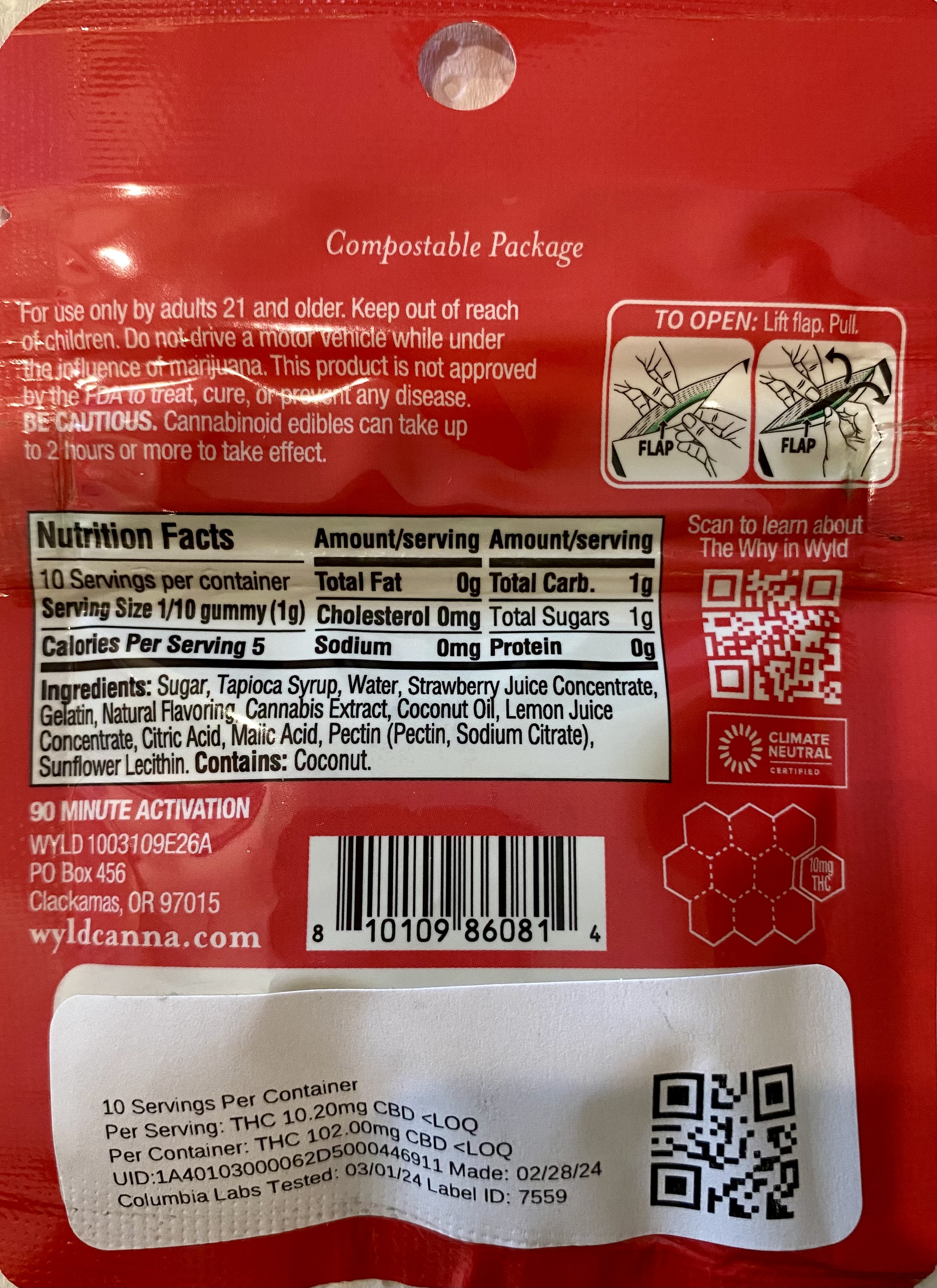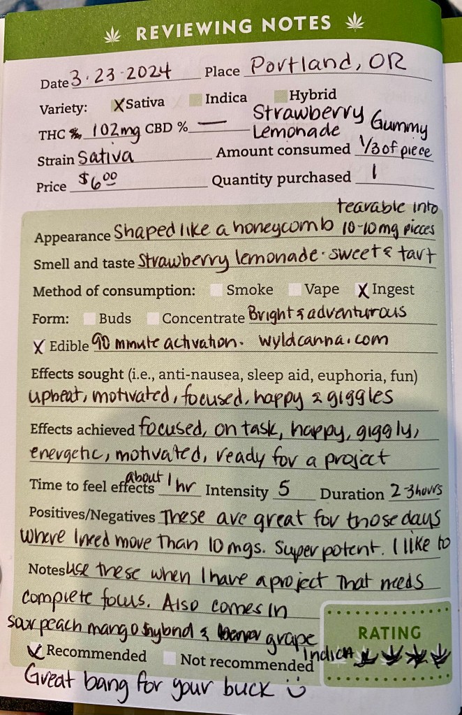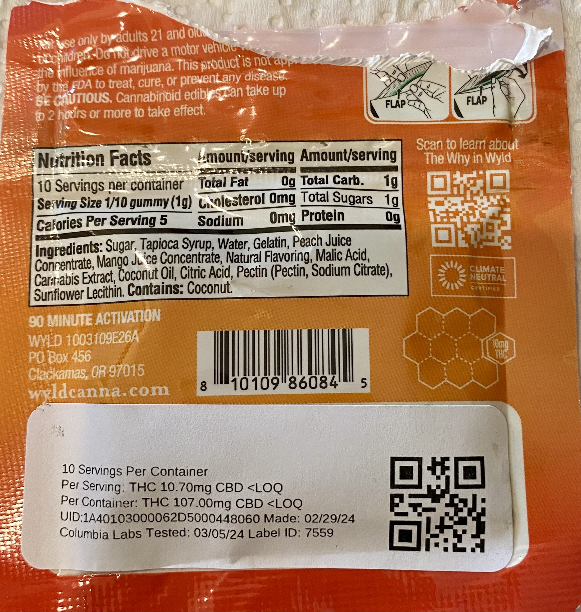 I love the Wyld brand. It’s one of the few brands that is available in most of the legal recreational states and a few additional. I usually buy the 1o pack but in Oregon they have a lot of what I like to call “bulk” sizes where the gummy is a huge piece that can be separated into 10 pieces. My tolerance has gotten pretty high so lately sometimes I will just bite a chunk off of the 100mg piece. Especially with sativa gummies because they normally don’t knock me out or get me into couch lock. I like the sativa gummy for work, especially if I have a project, I can really get into the zone. It’s perfect!
