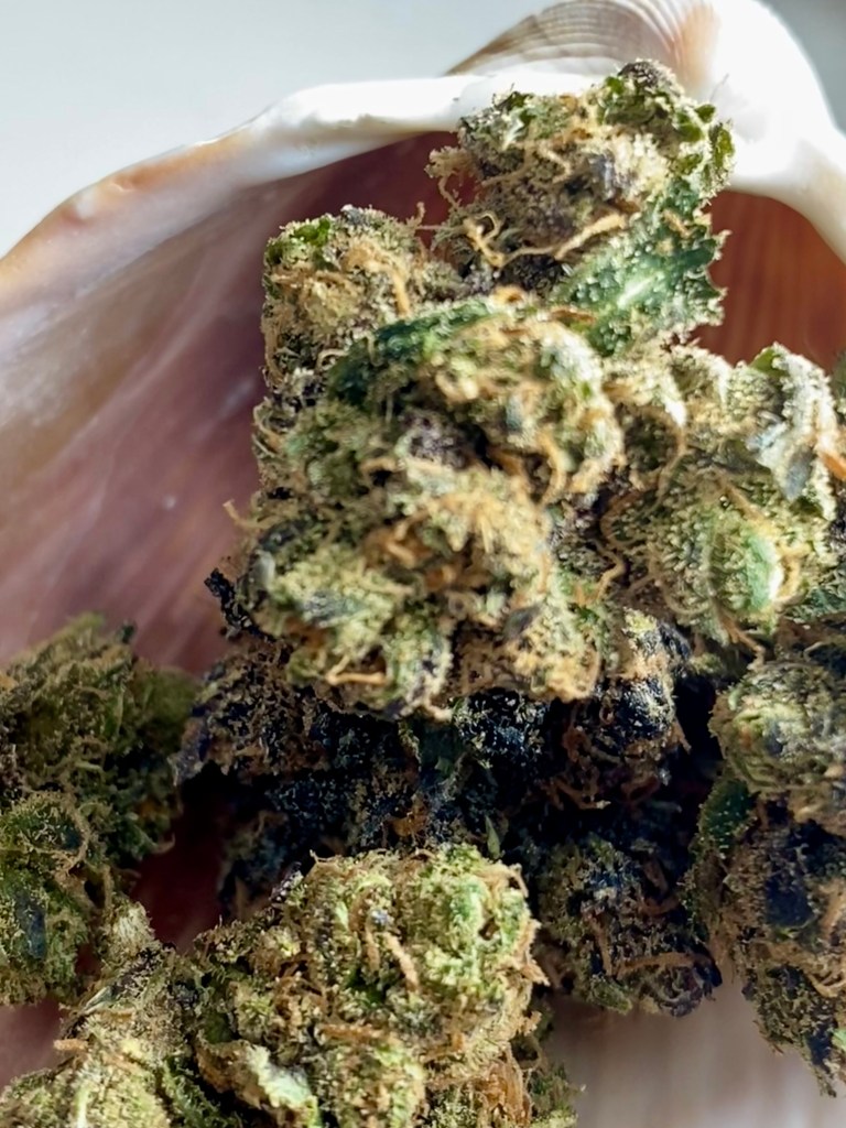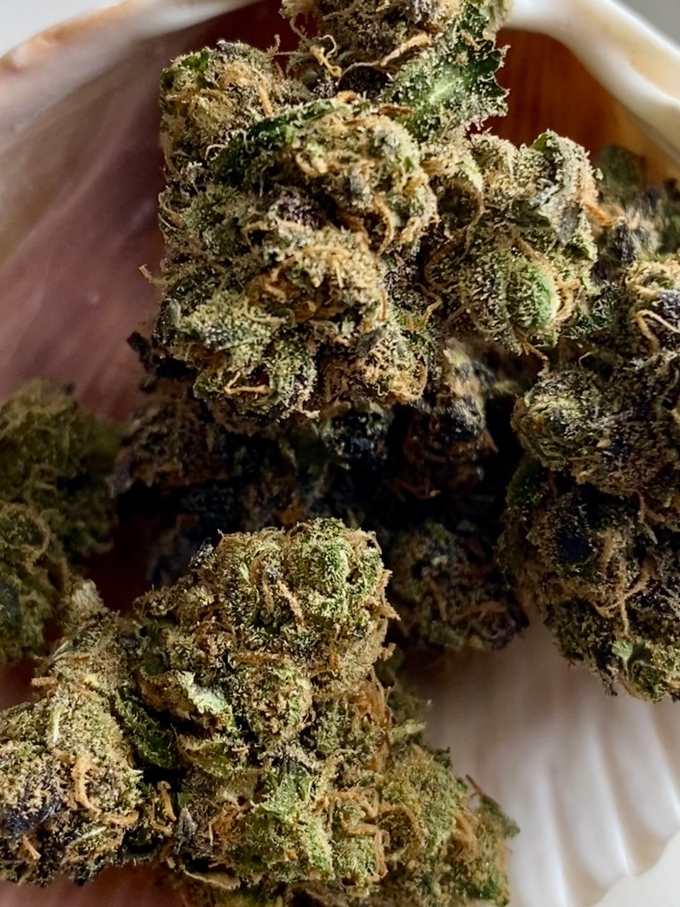 This lovely flower is amazing and it won Second Place in the High Times Oregon Cannabis Cup 2023. Not only is it beautiful bud the smell is out of this world. The buds are dark green with blue and purple tones and bright orange hairs. Also on the sticky side.