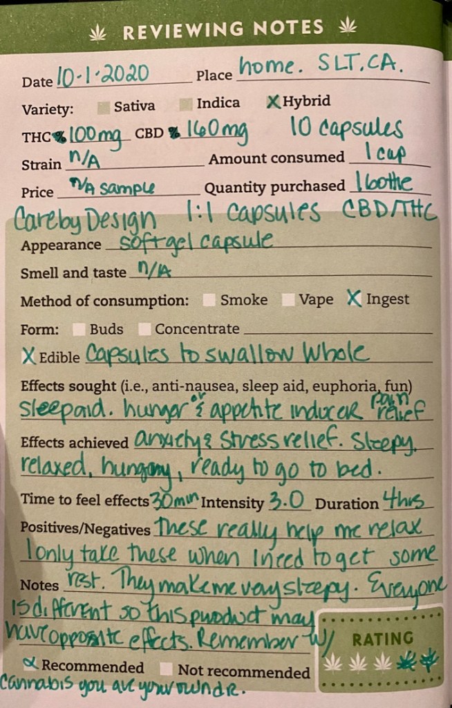There are a few different ratios that the capsules come in. Care by Design also has some great CBD/THC cartridges as well.