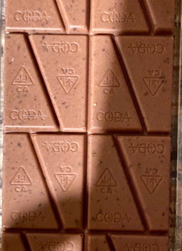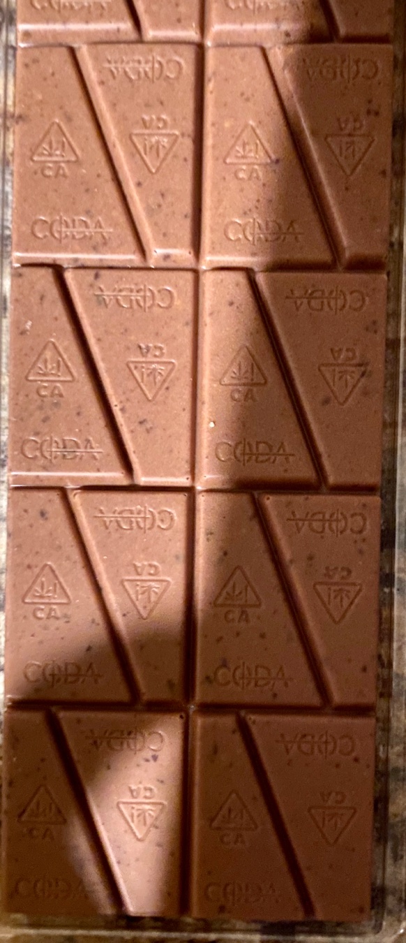 Each bar is easily divided into 10 pieces and each piece is 10mg of THC. I usually have one or two pieces depending on what I am doing. If I eat too much of any edible it just makes me really tired. I also don’t like to eat too many edibles because it brings up my tolerance and then when I smoke it’s not as effective.